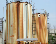 醋酸貯罐上的應用:醋酸有強烈的腐蝕性,它的水溶液有弱酸性,能跟許多活潑金屬發生反應。醋酸貯罐外部的彩鋼板已經嚴重腐蝕,彩鋼板壁薄難以除銹。