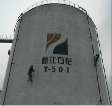 醋酸乙烯貯罐應用: 醋酸乙烯具有可燃性,對貯罐采用噴砂或手工除銹會產生火花,發生事故,造成危險。采用高耐候低表面處理金屬漆不須噴砂和除銹,可直接涂刷罐體,高效快捷。見圖10、圖11。