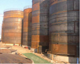 高耐候低表面處理漆以其良好的耐酸性和特殊封銹性能,可直接涂在生銹金屬表面,與原有的銹蝕相融合,將所有之銹蝕孔隙充實。具體見圖7、圖8。涂裝后的罐群見圖9。